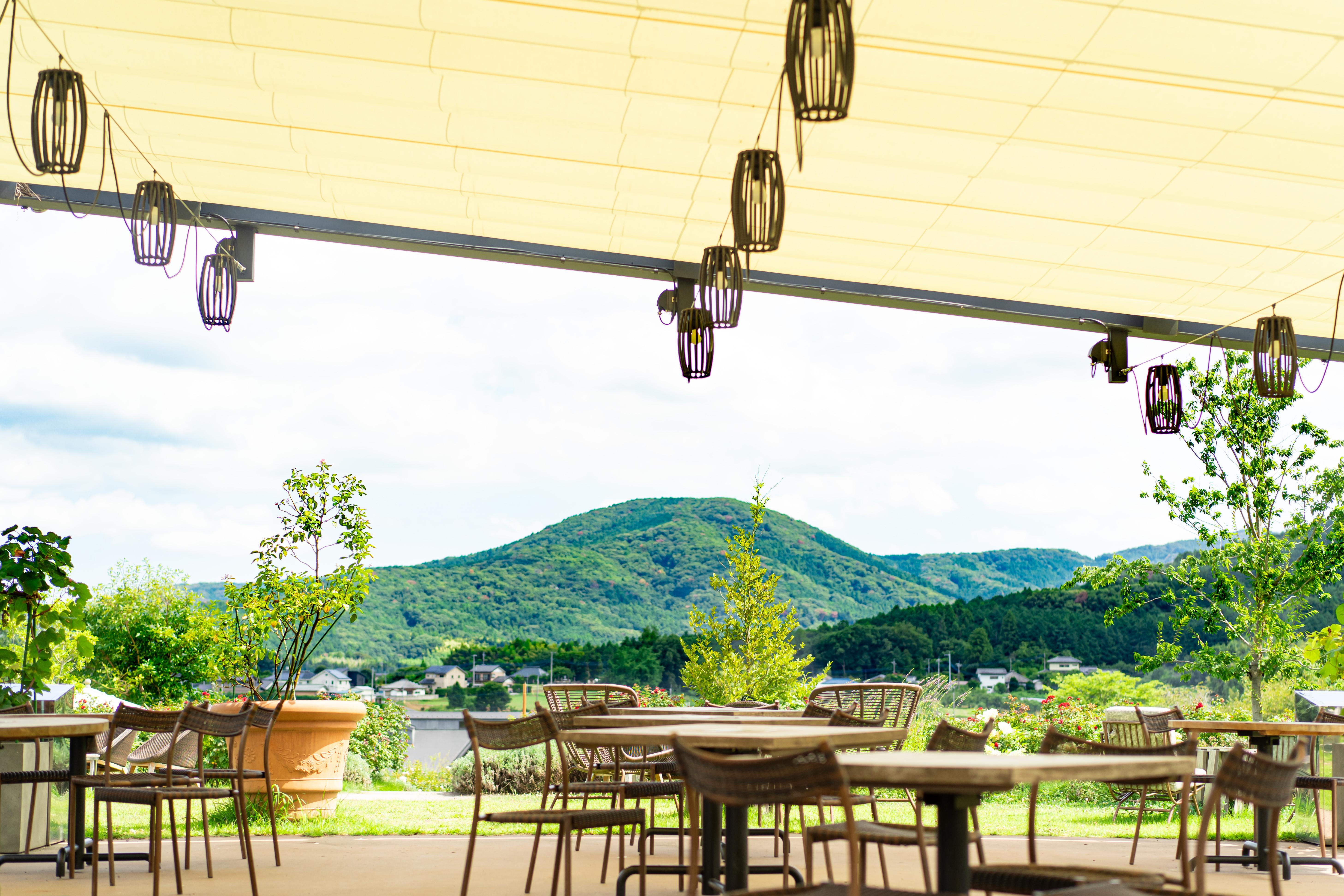 「いばらきフラワーパーク」の高台に位置する、グランピング施設「花やさと山」での宿泊が可能です。